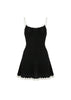 The design is framed by two-tone noir and brule binding along the neckline and spaghetti straps, finished with a delicate ruffle trim at the hem. It’s a versatile, polished staple designed to transition effortlessly from day to evening. A standalone hero piece designed for a streamlined, monochromatic look.