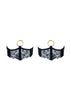 A pair of embroidered tulle and satin elastic thigh garters designed to match perfectly with any Siren lingerie set.  Featuring 24k gold plated components and fully adjustable strapping for a personalized fit. Attach to suspender clips via the 24k gold plated ‘o’ rings and elastic strapping. A Bordelle exclusive that you can’t shop anywhere else.